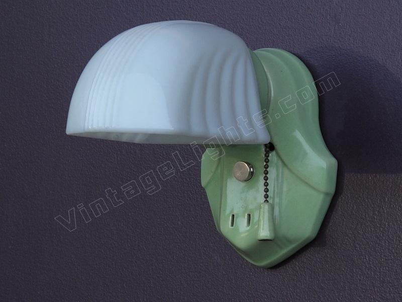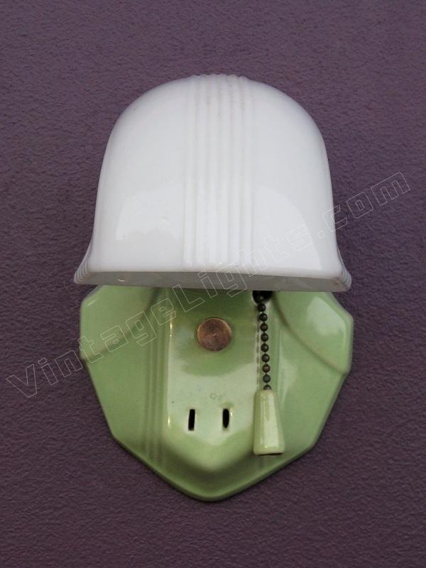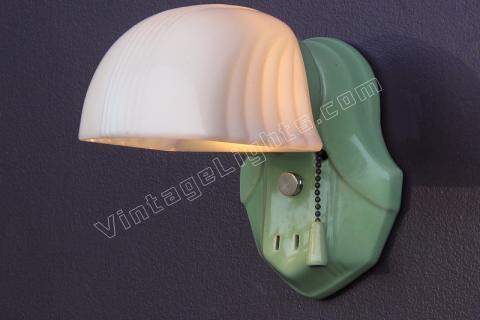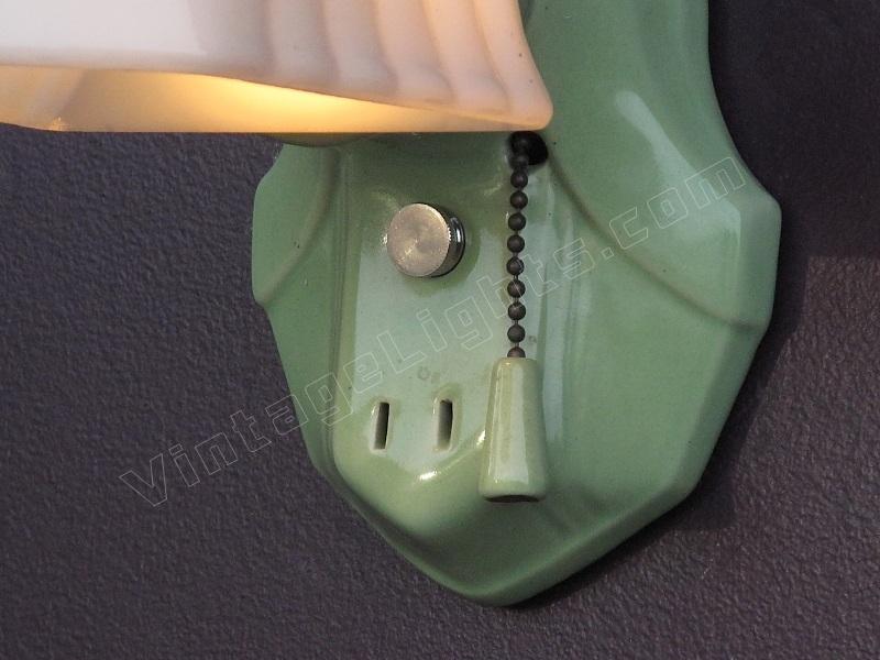 Nice antique green porcelain wall sconce. Great color to match original tiles or decor in vintage kitchen or bathroom. Antique shade as well.