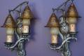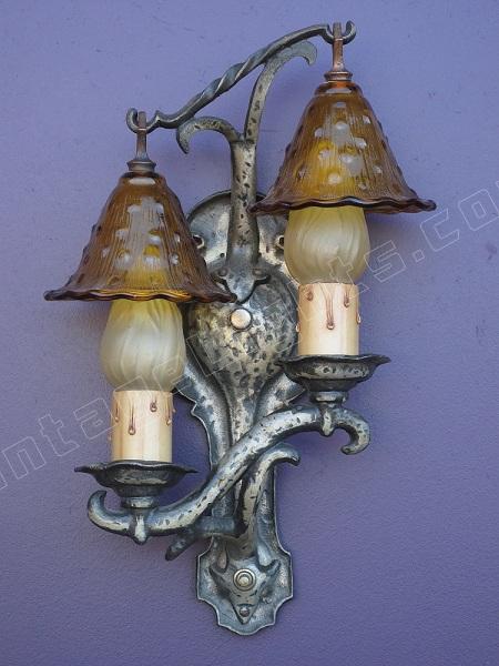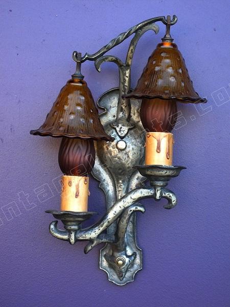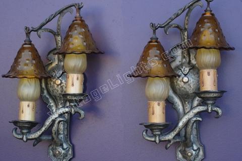 Rare Vintage Storybook Style Antique Wall Sconces w/ Original Smoke Bell Shades