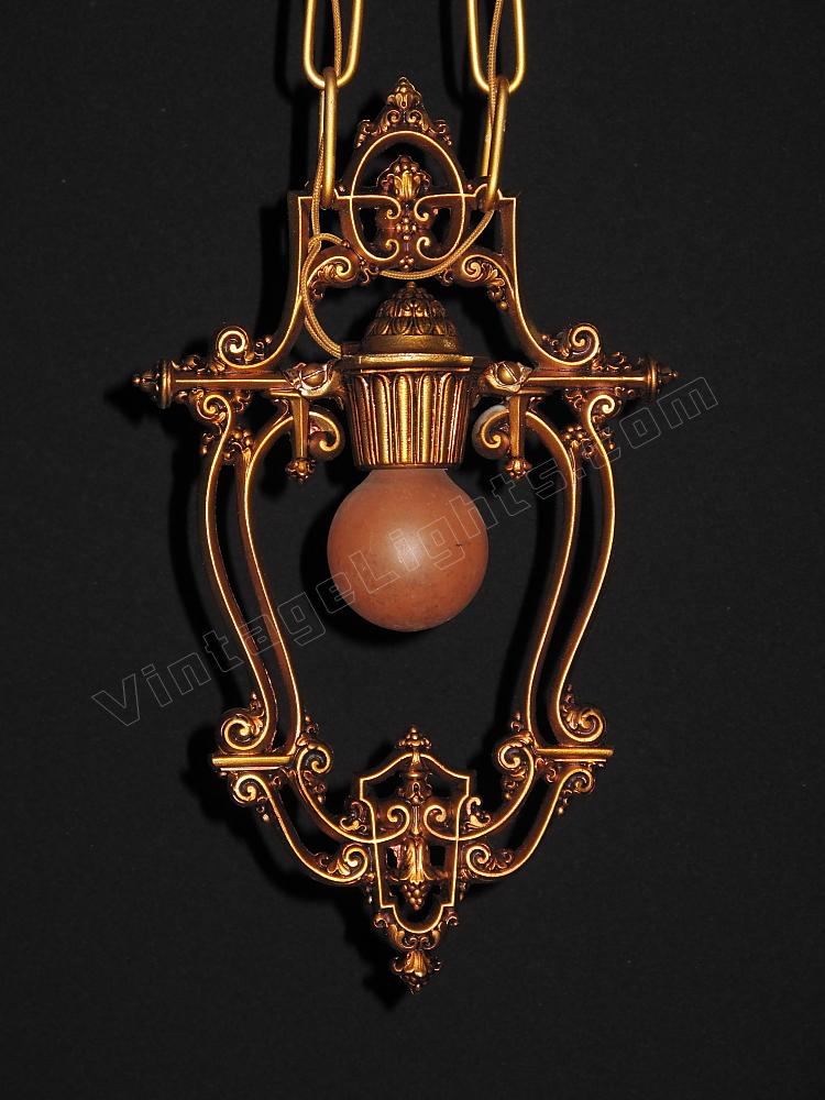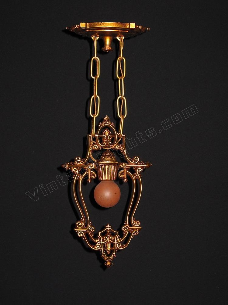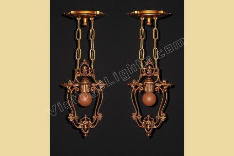 Refinished in an antique golden, these antique lighting fixtures would light any area of the home with pride.