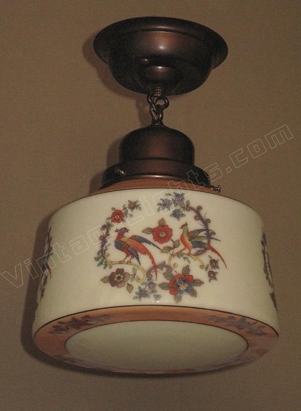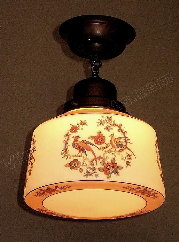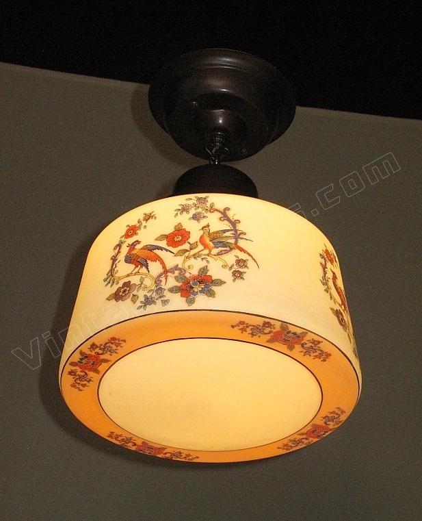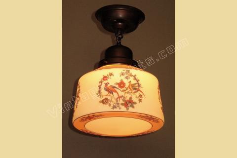 Vintage Ceiling Fixture with Spanish Revival Birds on the Globe
